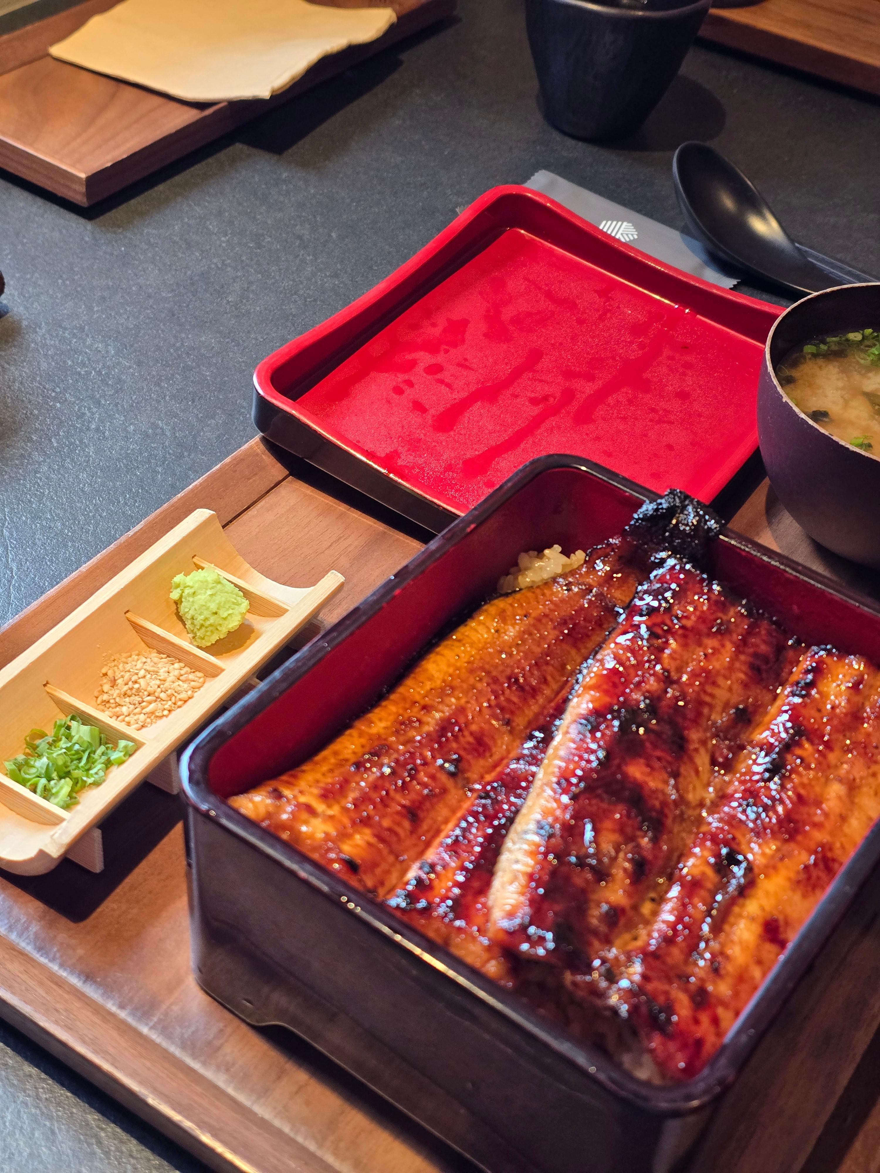 메뉴는 **우나쥬(장어덮밥)** 장어덮밥을 메인으로 하고 있습니다. 양에 대해 부담이 되실 경우 작은 사이즈 우나돈도 추천드립니다. 메인 요리에 소소한 곁들임 반찬이 나오는 '정식' 형태라 구성이 아주 탄탄해요. "기본기가 확실한 집"이라는 인상을 단번에 받을 수 있습니다.