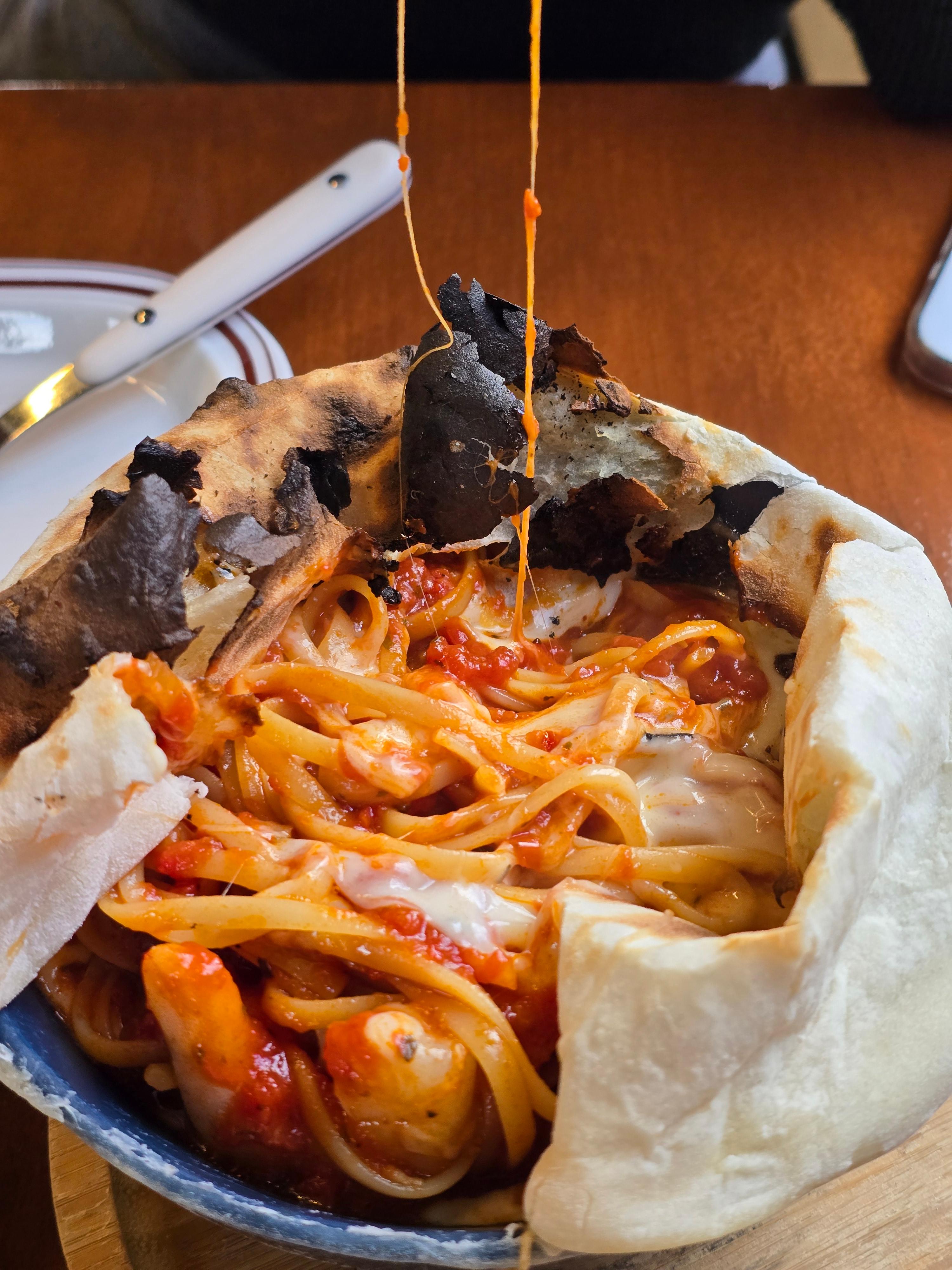 첫 조각을 들어 올렸을 때 느껴지는 김과 고소한 치즈 향은 왜 이곳이 유명한 맛집인지 증명해 줍니다. 치즈가 과하지 않아 담백하고, 도우의 쫄깃한 식감이 살아있어 먹을수록 속이 편안한 것이 특징이에요.