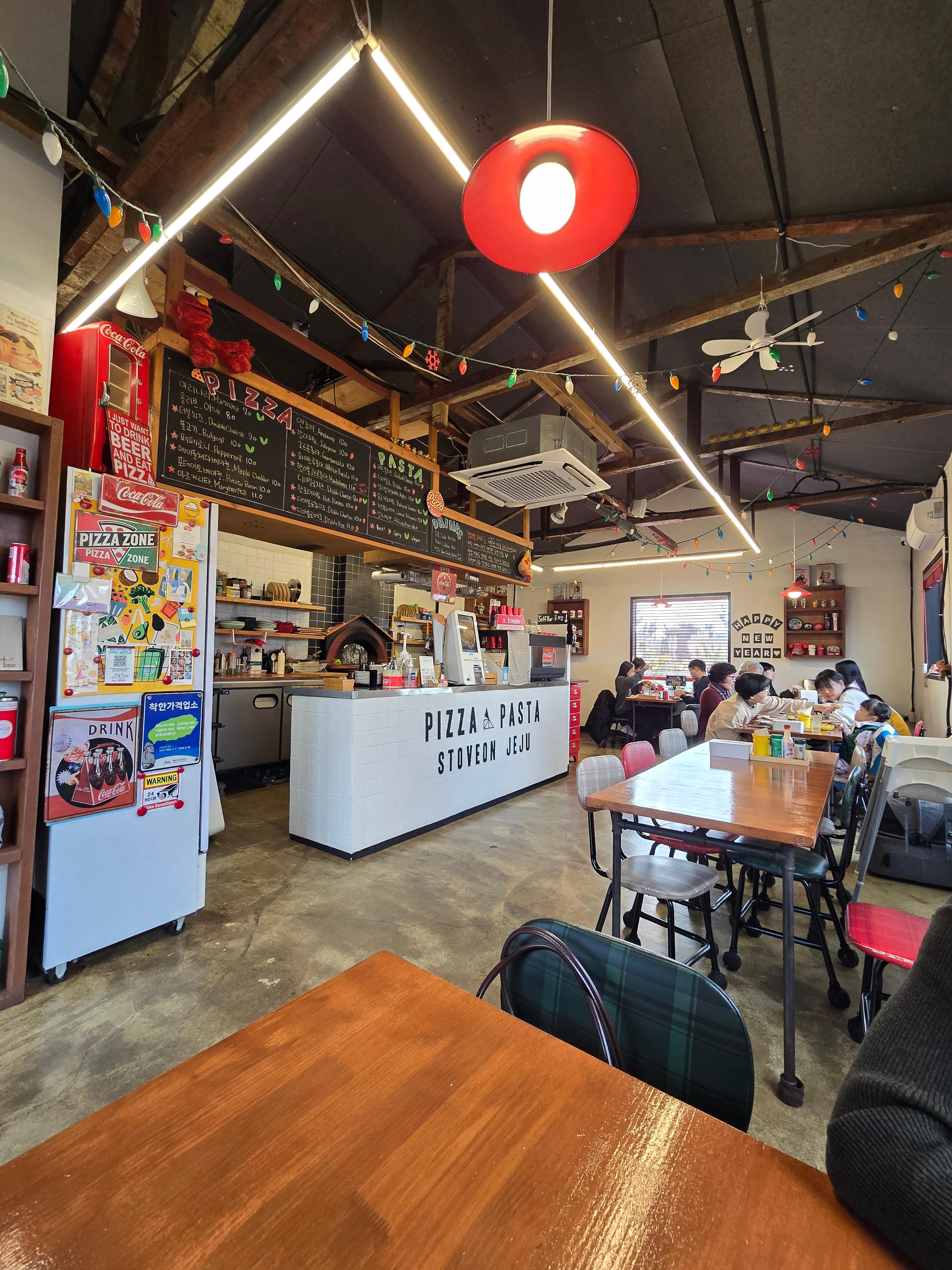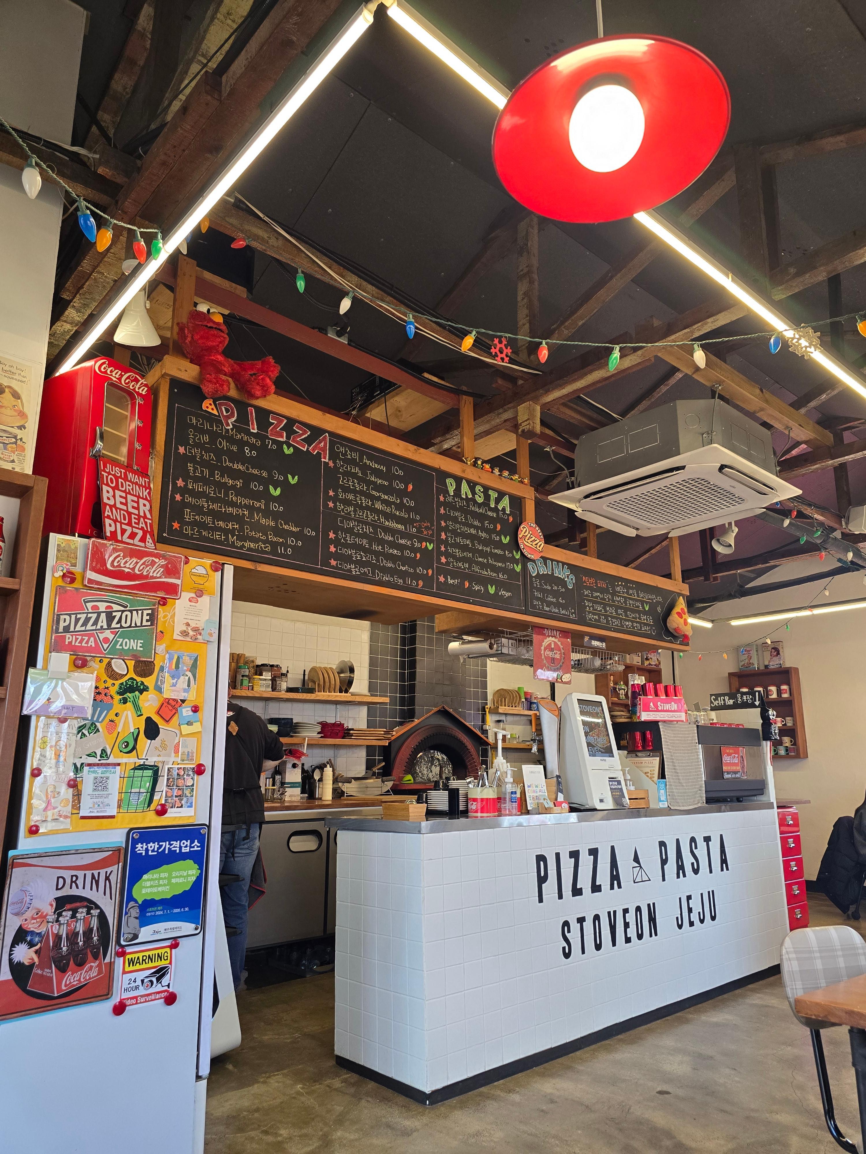 제주에서 피자를 먹는다고 하면 보통 큰 기대를 안 하게 되지만, 스토브온은 입구부터 발길을 붙잡는 묘한 매력이 있는 곳이에요.