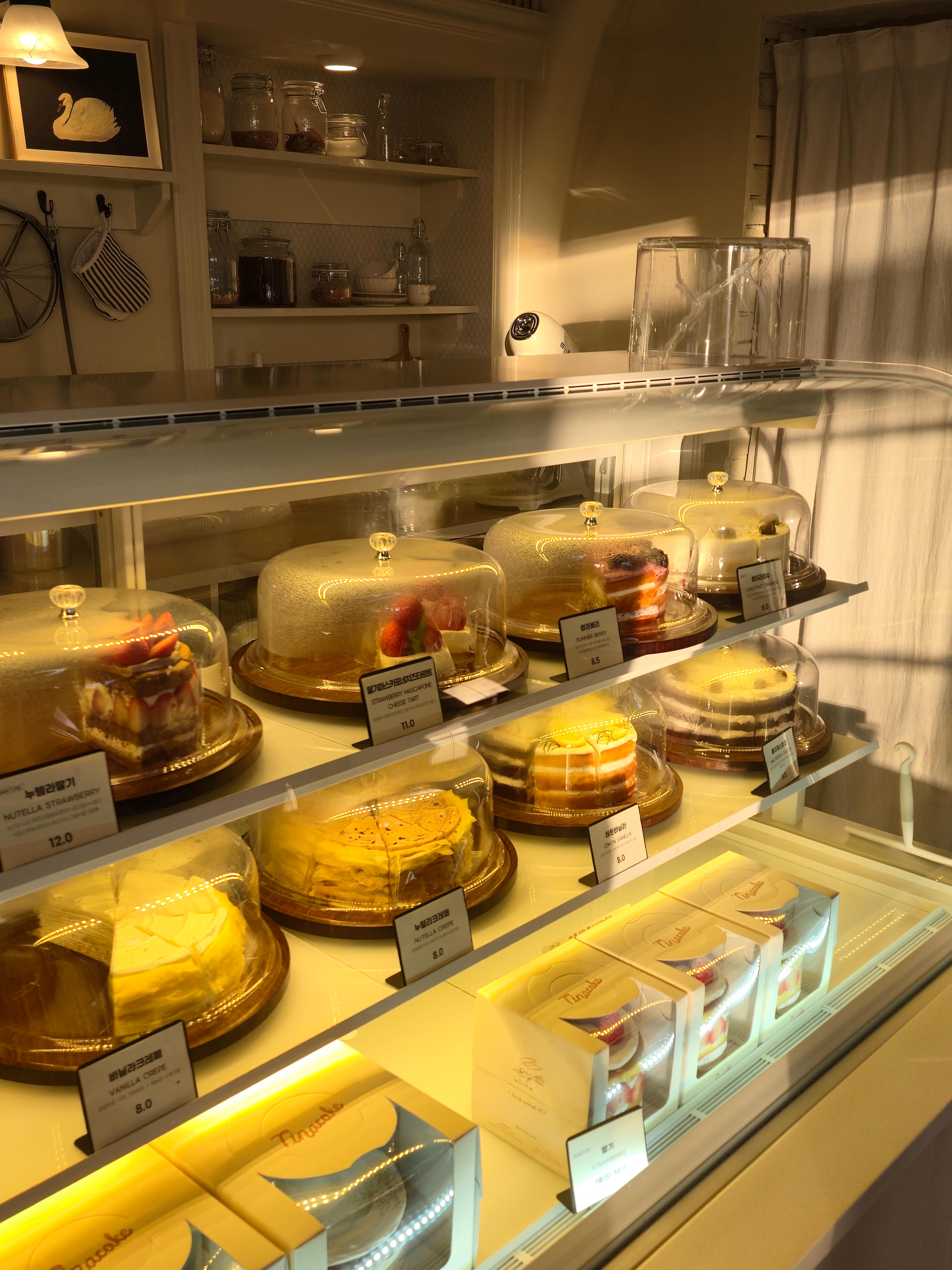 The interior is cozy, but it’s a Dessert Cafe where you can feel a neat aesthetic. Tina Cake focuses on the original shape of the Cake without loud decorations, which adds to its pride as a Cake Specialty Shop. By pre-ordering, you can enjoy popular items like Strawberry Cake and Tiramisu without worrying about them being sold out, allowing for a more relaxed visit.